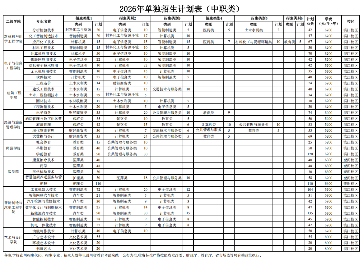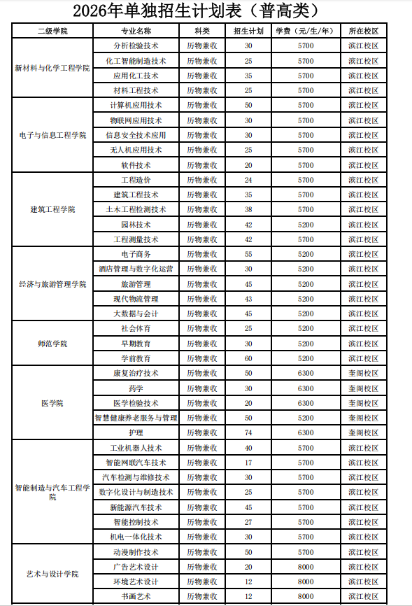 2026年单独招生计划表(普高类、中职)